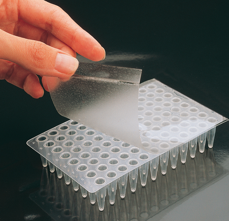 Sealing film for use with microplates, multiwell plates and microtiter plates.